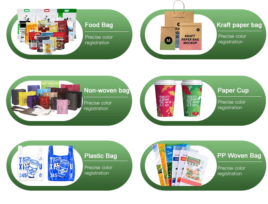 Thích hợp cho PE, BOPP, PET, CPP, giấy và các chất nền linh hoạt khác, lý tưởng cho bao bì thực phẩm, túi mua sắm, nhãn và in bao bì linh hoạt khác nhau.